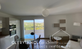 Grande baie sur terrasse intime avec vue panoramique conviviale au pays des cigales. Grande chambre double avec deux placards aménagés et chevets stylés..