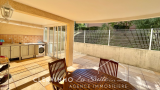 Un hall d'entrée avec placards, une grande salle à manger donnant sur la grande terrasse, une cuisine semi-ouverte entièrement équipée, un toilette séparé, une salle de bain, une chambre de 12 M2 avec placard, une deuxième de 11.5 M2 équipée d'une penderie.